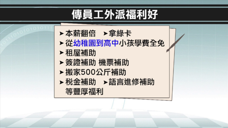 派任 3 年后經(jīng)主管同意可轉(zhuǎn)任美國廠,公司協(xié)助申請綠卡(需放棄中國臺灣職務(wù)及分紅);