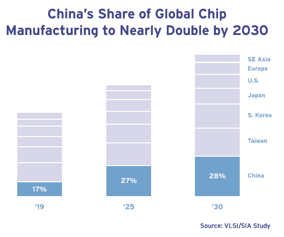美國在芯片制造方面嚴(yán)重依賴亞洲供應(yīng)商,這是美國在這個產(chǎn)業(yè)上的弱點。從長期來看,中國大陸準(zhǔn)備通過補貼大力建設(shè) 60 多家新晶圓廠,甚至?xí)?2030 年會成為全球最大的芯片制造國,占比翻番,這對我們非常不利。