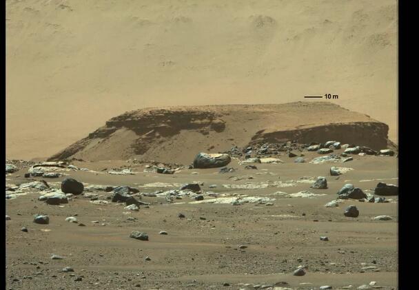 圖3:耶澤洛隕石坑三角洲的景色,遠(yuǎn)處的土堆離漫游車大約有 1600 米遠(yuǎn)