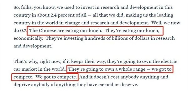 拜登:中國(guó)人正搶走我們的飯碗