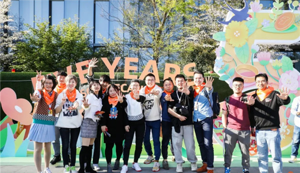 在阿里巴巴“五年陳”授戒的那幾天,西溪園區(qū)彩旗飄揚(yáng),一些老員工的祝福隨處可見。