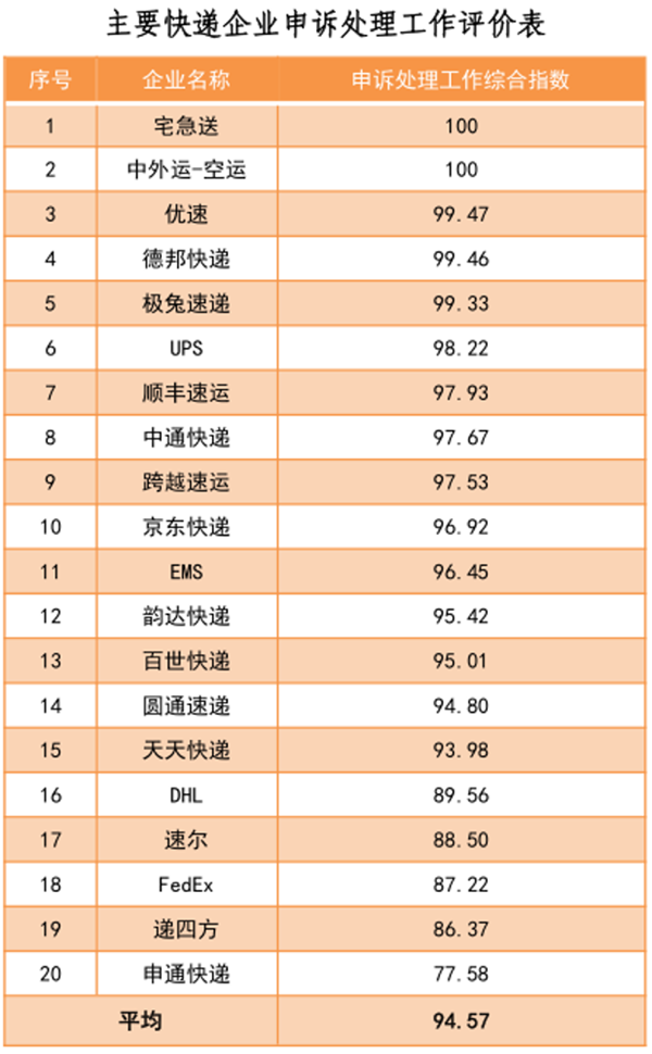 國家郵政局公布的5月郵政業(yè)用戶申訴情況通告顯示,中國郵政(EMS)申訴處理工作綜合指數(shù)高于韻達(dá)快遞、百世快遞、圓通快遞、天天快遞、申通快遞等。
