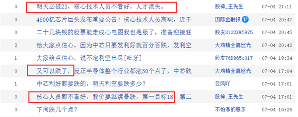 但是網(wǎng)友們可不這么認(rèn)為,股吧里的股民十分悲觀,紛紛認(rèn)為,核心技術(shù)人員都不看好,周一開盤暴跌。