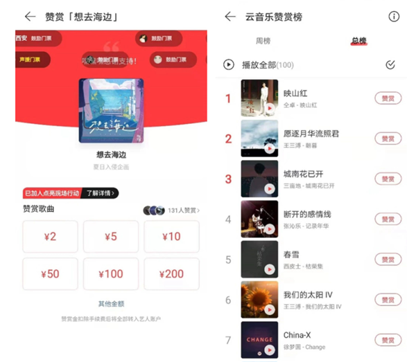 早在2016年,網(wǎng)易云音樂和QQ音樂就都推出過贊賞功能,以支持用戶為自己喜愛的音樂作品進行打賞,但兩者設(shè)置思路全然不同。