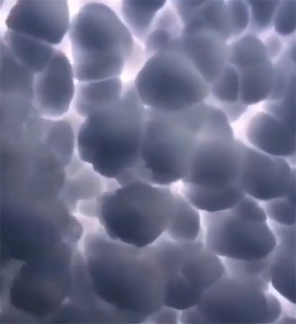 一般來說,在看到這種云,確實相當(dāng)嚇人,很多人根本就沒有見過,而它的形成主要是在極端性氣候的時段,主要是在積雨云下方形成的乳狀型積云,概念就是“當(dāng)下沉氣流中溫度較冷的空氣與上升氣流中溫度較暖的空氣相遇時,將會形成如同一個個袋子形狀的乳狀云”。
