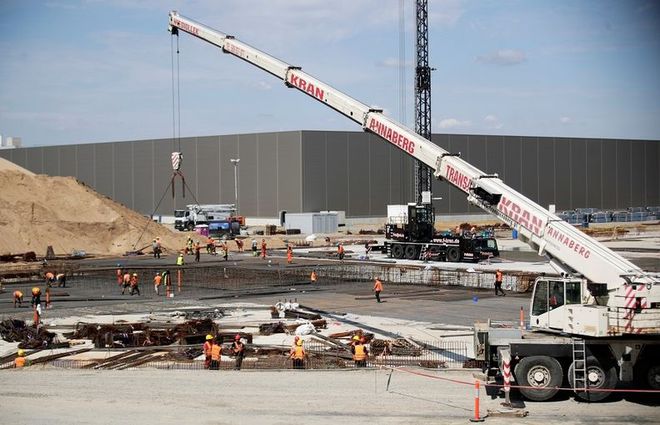 圖示:8 月 12 日,工廠在特斯拉柏林超級(jí)工廠廠區(qū)施工