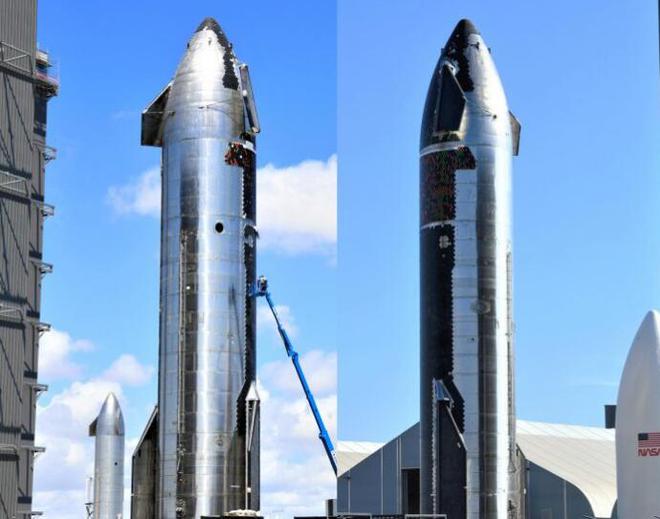 然而,除了移除猛禽發(fā)動(dòng)機(jī)外,自被送返高艙以來(lái),工作人員最重要的任務(wù)是檢查 S20 的隔熱罩,修復(fù)或更換破碎、破損和松動(dòng)的隔熱瓦。在 S20 回到建造現(xiàn)場(chǎng)后不久,吊桿升降機(jī)上的工作人員開(kāi)始了看似艱巨的過(guò)程,即檢查星際飛船的機(jī)頭隔熱罩,并用彩色膠帶標(biāo)記數(shù)百塊有裂縫、破碎或其他不太明顯問(wèn)題的隔熱瓦。