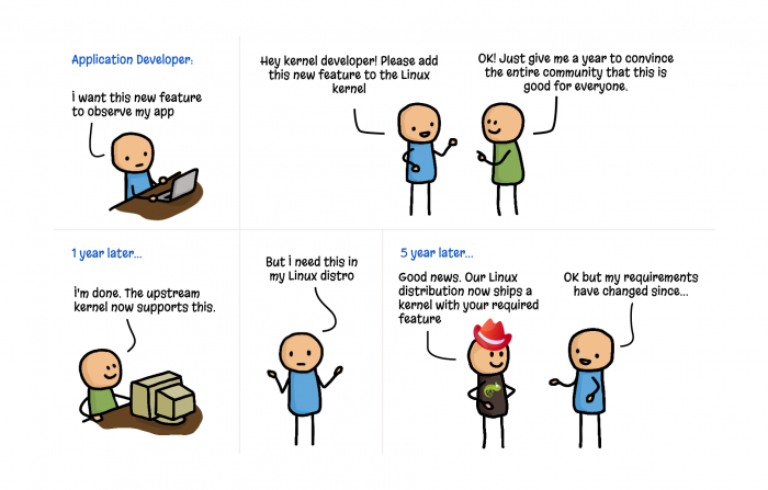 從歷史上看,由于內(nèi)核具有監(jiān)督和控制整個(gè)系統(tǒng)的特權(quán)能力,操作系統(tǒng)一直是實(shí)現(xiàn)可觀察性、安全性和網(wǎng)絡(luò)功能的理想場所。