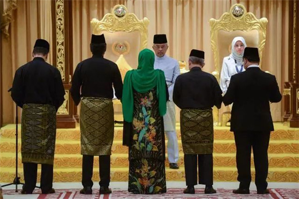 2020年3月10日,在馬來西亞普特拉賈亞,馬來西亞最高元首阿卜杜拉(中)出席穆希丁內(nèi)閣宣誓就職儀式。(新華社發(fā),馬來西亞新聞局供圖)