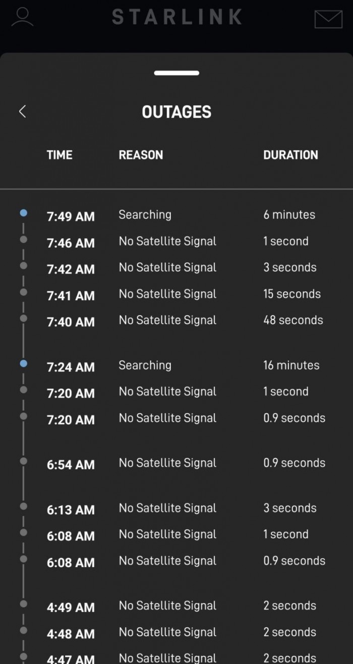 并非所有 Starlink 用戶(hù)都反饋存在故障,一些用戶(hù)報(bào)告說(shuō)服務(wù)順利,而其他早些時(shí)候面臨故障的用戶(hù)現(xiàn)在報(bào)告說(shuō)他們的服務(wù)工作正常。這次故障似乎是在 12 個(gè)小時(shí)前開(kāi)始的,并在美國(guó)時(shí)間今天凌晨加劇。據(jù) Reddit 用戶(hù) godch01 稱(chēng),到目前為止,我們?cè)O(shè)法接觸到的第一份關(guān)于這一憤怒的報(bào)告發(fā)生在美國(guó)東部時(shí)間今天 4:29。據(jù)他說(shuō),這次中斷持續(xù)了 8 分鐘,之后他的服務(wù)開(kāi)始正常工作。