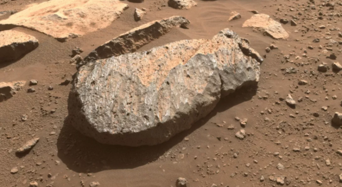 NASA 現(xiàn)在已經(jīng)鎖定了一塊被稱為"Rochette"的巖石。該漫游車(chē)將用一個(gè)研磨工具對(duì)巖石進(jìn)行一些粗加工,以獲得更好的外觀,并幫助團(tuán)隊(duì)決定這是否確實(shí)是他們想要取樣的巖石。如果可以的話,漫游車(chē)將鉆進(jìn)巖石,收集一個(gè)鉛筆厚的核心部分,并將其封入一個(gè)樣品管。