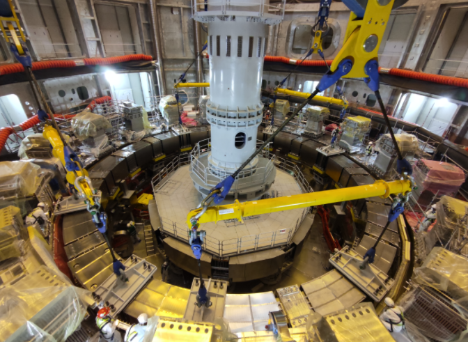 當?shù)貢r間 9 月 16 日,在法國南部卡達拉舍,“人造太陽”國際熱核聚變實驗堆(ITER)托卡馬克裝置的最后一個下部主要磁體部件——極向場超導線圈 PF5 成功落位,標志著 ITER 項目主機安裝第一階段最后的里程碑完成,為第二階段真空室安裝創(chuàng)造了關鍵條件,這是由中核集團牽頭組成的中法聯(lián)合體在法國 ITER 現(xiàn)場啃下的又一塊“硬骨頭”,有力推進了 ITER 項目進展。