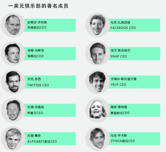 1 美元俱樂部($1 club)歷史悠久。早在 1979 年,美國三大汽車公司之一克萊斯勒遭遇困境,時任總裁的李·艾科卡宣布公司財務狀況好轉前自己都只拿 1 美元年薪。后來克萊斯勒扭虧為盈,李·艾科卡的 1 美元年薪也成為佳話,引來不少效仿者。