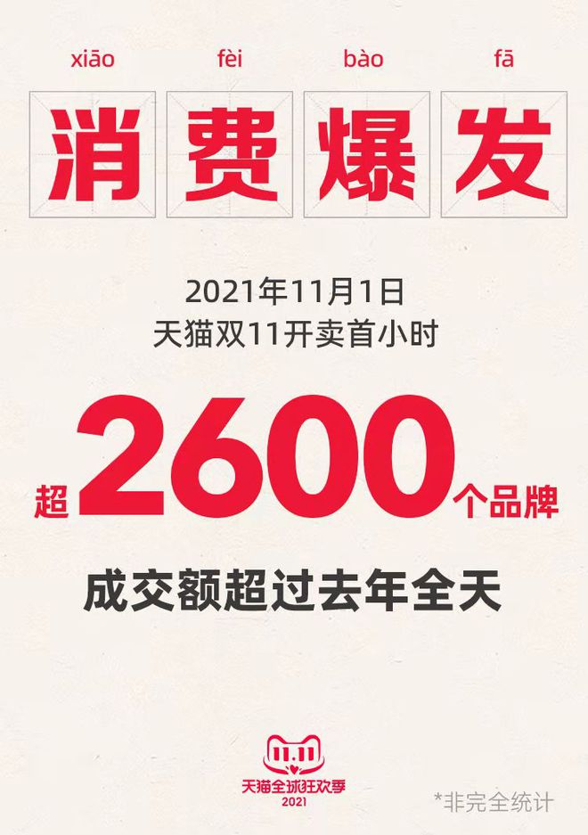 據(jù)不完全統(tǒng)計,開售首小時,超 2600 個品牌的成交額超過去年全天。