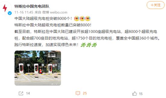近日,@特斯拉中國充電團(tuán)隊在社交平臺宣布,中國大陸超級充電樁突破 8000 個。特斯拉表示,截至目前,特斯拉在中國大陸已建設(shè)開放超 1000 座超級充電站,超 8000 個超級充電樁,配合超 700 座目的地充電站,超 1750 個目的地充電樁,覆蓋全中國超 360 個城市。