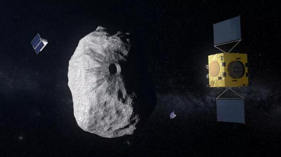 圖3:歐洲航天局 Hera 任務(wù)渲染圖,它將研究 DART 留下的撞擊坑
