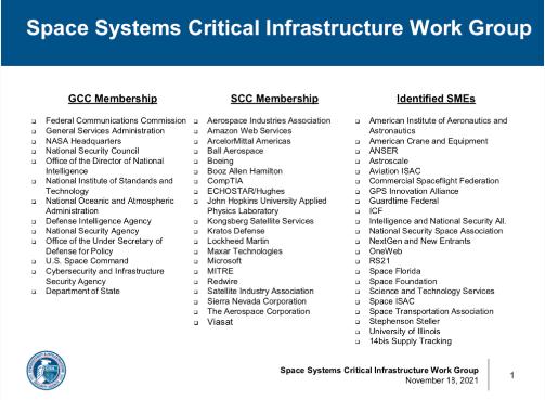 這個工作組隸屬于 DHS 的關鍵基礎設施合作咨詢委員會(CIPAC),其與會公司名單直到現(xiàn)在才被公開。DHS 網(wǎng)絡安全和基礎設施安全局(CISA)國家風險管理中心(NRMC)負責人 Bob Kolasky 跟 Via Satellite 分享了該名單。