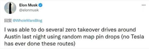 周二,馬斯克發(fā)了一條推特,說他“昨日晚間”在德州奧斯丁附近駕駛特斯拉,使用 FSD Beta 10.5 完全自動駕駛功能,并且隨機在地圖上選了幾條路線。在 FSD 功能的操作下,車輛行駛穩(wěn)定,全程無需人工接管。馬斯克還強調(diào),這些路線沒有高精度地圖支持,甚至連特斯拉車輛都是第一次行駛。