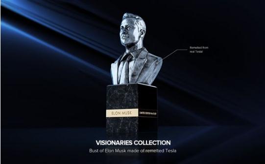 雕像高度為 20cm 左右,原材料由特斯拉車輛的汽車部件熔鑄而成。Caviar 營銷主管稱,半身像的材料來自一輛藍色特斯拉 Model 3 的金屬部件,比如引擎蓋、車門和其他面板等。