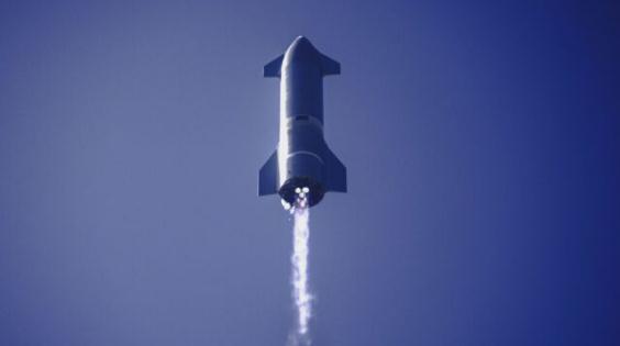 圖2:這艘星際飛船原型在進(jìn)行亞軌道試飛中只使用三個(gè)猛禽發(fā)動(dòng)機(jī)提供動(dòng)力