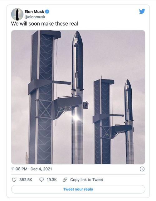 12 月 6 日消息,當(dāng)?shù)貢r(shí)間周六太空探索技術(shù)公司 SpaceX 創(chuàng)始人埃隆·馬斯克(Elon Musk)在個(gè)人社交媒體 Twitter 上發(fā)布了有關(guān)星際飛船的圖片,并稱:“我們很快就能實(shí)現(xiàn)這些目標(biāo)。”