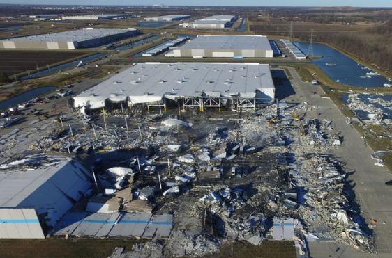 伊利諾伊州科林斯維爾緊急事務(wù)管理局發(fā)布在 Facebook 主頁上的帖子稱,坍塌是一起“大規(guī)模傷亡”事件。它后來發(fā)布了張最新的事件善后照片,顯示倉庫的很大一部分被龍卷風(fēng)完全摧毀。據(jù)當(dāng)?shù)孛襟w報道,亞馬遜五年前在愛德華茲維爾開設(shè)了這個倉庫,占地接近 14 萬平方米。