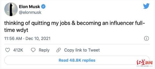 12 月 9 日夜間,馬斯克更是在推特上征求網(wǎng)友的意見稱:“正在考慮辭去所有的工作,全身心地做一名網(wǎng)紅,你怎么想?”
