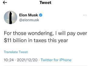 馬斯克最新在社交媒體上表示,“告訴那些好奇的人,我今年將支付超過 110 億美元的稅款”。