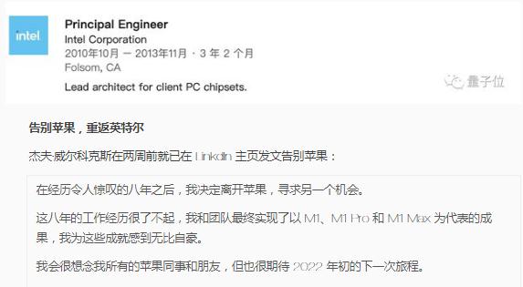 蘋果 Mac 系統(tǒng)架構(gòu)總監(jiān)杰夫·威爾科克斯(Jeff Wilcox)已跳槽到英特爾,負(fù)責(zé)領(lǐng)導(dǎo)英特爾的 SoC 架構(gòu)設(shè)計工作。