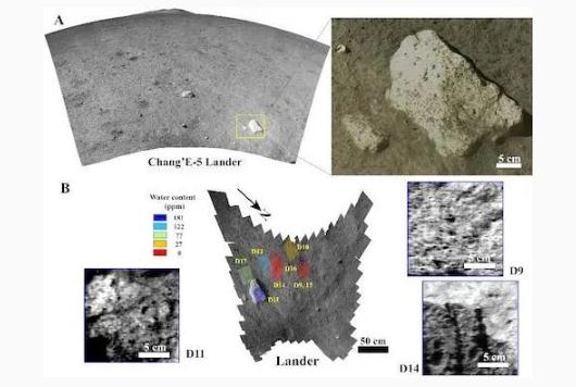 數(shù)據(jù)分析結果為月球上真的存在水增加了新的確鑿證據(jù):嫦娥五號采樣區(qū)的水含量在 120 ppm(百萬分之 120)以下,而巖石中的水含量約為 180 ppm。