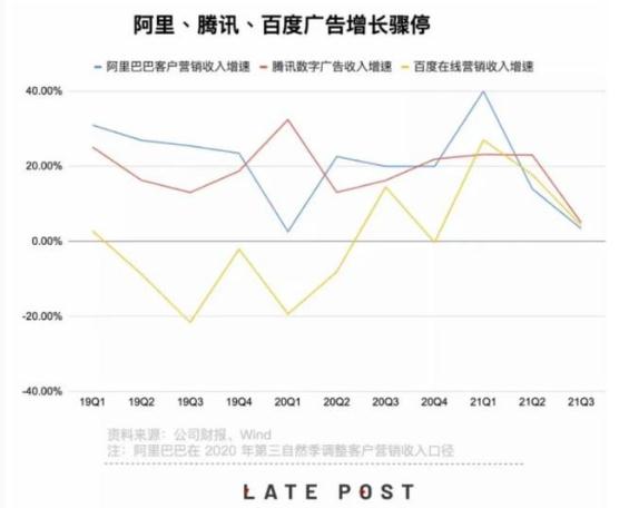 2021 第三季度財(cái)報(bào)顯示,阿里巴巴貢獻(xiàn)收入大頭的客戶管理(含廣告和傭金)收入同比增長(zhǎng)僅為3%;百度的廣告營(yíng)收再一次陷入低迷,廣告營(yíng)收同比增速僅為6%;騰訊的廣告收入增速將至了 2017 年以來(lái)的最低點(diǎn),Q3 廣告收入同比增長(zhǎng)5%。甚至以騰訊新聞為主要承載平臺(tái)的媒體廣告收入,開始負(fù)增長(zhǎng)。