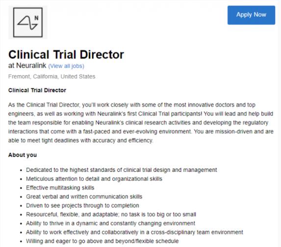 據(jù) The Verge 報道,埃隆·馬斯克的腦機接口公司 Neuralink 最新發(fā)布的招聘信息顯示,該公司正在尋求招聘一名“臨床試驗主任”,這個職位可以幫助該公司實現(xiàn)其既定目標,即在真實的人身上測試其大腦植入物。