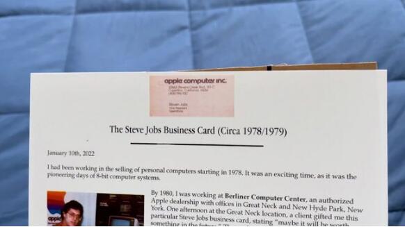 一張 1979 年的史蒂夫·喬布斯名片,即將于 2 月中旬開啟拍賣、且競標(biāo)將于 3 月 17 日截止。作為蘋果已故聯(lián)合創(chuàng)始人,喬布斯當(dāng)時在該公司的掛名職務(wù)為運(yùn)營副總裁。多年來,這張罕見的名片一直被油管名人 Alfred DiBlasi 塑封后保存在倉庫中,直到近日重見天日。