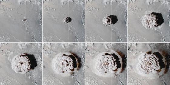 這些圖像顯示了 1 月 15 日不同階段的羽流
