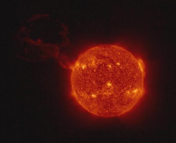 據(jù) New Atlas 報道,太陽軌道飛行器(Solar Orbiter)捕捉到了太陽巨大噴發(fā)的戲劇性圖像。據(jù)歐空局(ESA)稱,這是有史以來在單張圖像中觀察到的最大的日珥噴發(fā),整個太陽盤都在一張圖片中,幸運的是,它并沒有指向地球。