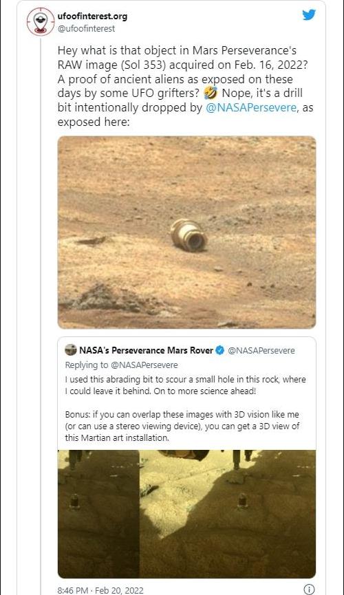 UFO of Interest 本周早些時候強調(diào)了最近的漫游車圖片,并追蹤了該物體背后的故事。