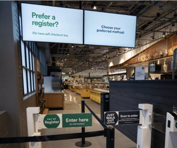 在華盛頓特區(qū)格洛弗公園附近的 Whole Foods Market 里,是亞馬遜在 2017 年以 137 億美元收購(gòu)的雜貨連鎖超市。2022 年 2 月,亞馬遜在這家超市采用了無(wú)收銀員的「Just Walk Out Shopping」技術(shù)。