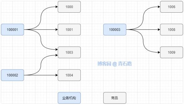 業(yè)務(wù)機構(gòu)下銷售商品,同個業(yè)務(wù)機構(gòu)可以銷售不同的商品,同個商品可以在不同的業(yè)務(wù)機構(gòu)銷售,也就說:業(yè)務(wù)機構(gòu)與商品是多對多的關(guān)系