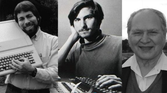 ▲ 蘋(píng)果公司的原始創(chuàng)始人從左至右:史蒂夫?沃茲尼亞克、史蒂夫?喬布斯、羅恩?韋恩