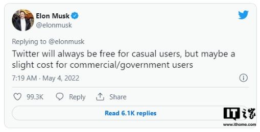 IT之家了解到,馬斯克說(shuō),推特將始終對(duì)“普通用戶”保持免費(fèi),但政府和商業(yè)用戶可能需要付出“輕微成本”。
