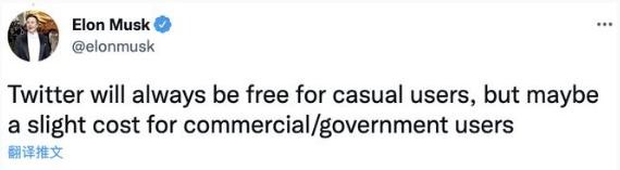 當(dāng)?shù)貢r間 5 月 3 日,馬斯克發(fā)表推文稱,推特將永遠對普通用戶免費,但商業(yè)和政府用戶可能要支付一些費用。