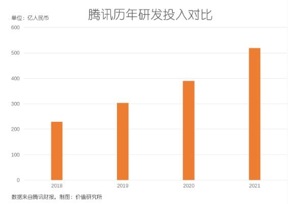 數(shù)據(jù)顯示,2021 財年騰訊研發(fā)投入達(dá)到 18 億元,同比增長 33%。拆分到各個季度,研發(fā)支出的同比增速都在 30% 以上,整體投入較 2018 年接近翻倍。此外,騰訊研發(fā)團(tuán)隊規(guī)模也是不斷擴(kuò)大,截止去年年底研發(fā)人員總數(shù)同比增長 41%,新增研發(fā)項目 6000+,較 2020 年增加 51%。
