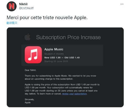 蘋果給南非學(xué)生訂閱用戶的一封電子郵件中寫道:“感謝您訂閱 Apple Music。我們想讓您知道此訂閱即將發(fā)生的變化,這項(xiàng)訂閱的價(jià)格將從每月 1.49 美元提高到每月 1.99 美元。”