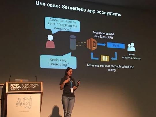 在應(yīng)用程序生態(tài)系統(tǒng)中,應(yīng)用程序或工作流是在無服務(wù)器環(huán)境中創(chuàng)建的,并結(jié)合了 AWS 功能和產(chǎn)品以及第三方服務(wù)商 API。Bonner 舉了一個例子,有人告訴 Amazon Echo,他們正在做演示,然后語音數(shù)據(jù)觸發(fā) lambda 函數(shù),通過 Slack API 將該消息傳遞給遠(yuǎn)程團(tuán)隊(duì)。然后在無服務(wù)器環(huán)境中輪詢確定團(tuán)隊(duì)何時做出響應(yīng)并向 Echo 發(fā)送反饋信息。