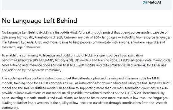 Meta 公司的“無語言遺漏”(NLLB)計劃。