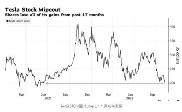 隨著投資者在埃隆?馬斯克 (Elon Musk) 收購?fù)铺睾罄^續(xù)拋售特斯拉股票,特斯拉股價抹掉了過去 17 個月的所有漲幅。