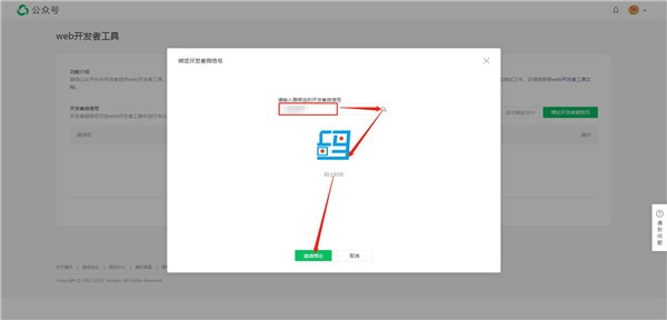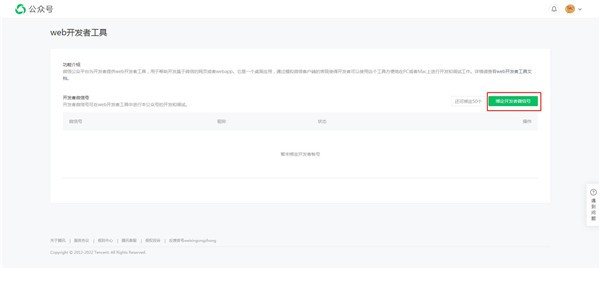 3.進入到Web開發(fā)者工具菜單里之后,我們就可以點擊綁定開發(fā)者微信號按鈕來添加開發(fā)者,每個微信公眾號可以添加50個開發(fā)者。