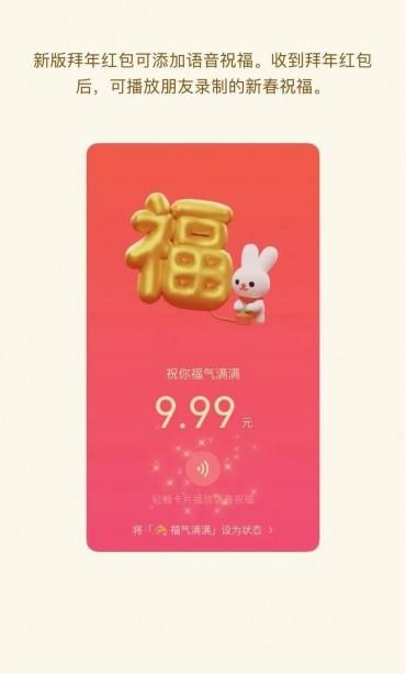 拜年紅包會隨機選擇一些吉利數(shù)字。比如:1.66、2.88、6.66、8.88、9.99 等。每個數(shù)字配套帶有不同的祝福語和不同的動態(tài)效果。