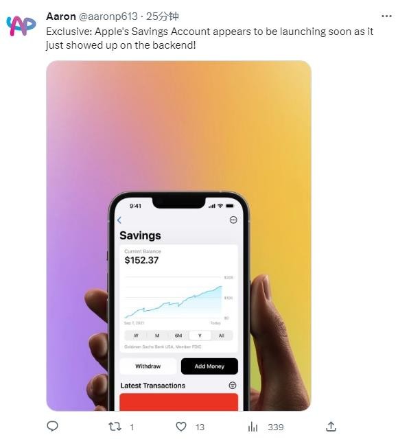 彭博社馬克?古爾曼在今年 3 月的推文中稱,蘋果已在 Apple Card 條款中添加了“Apple Card Savings”功能的相關(guān)描述,表明這項(xiàng)蘋果版“余額寶”功能即將上線。