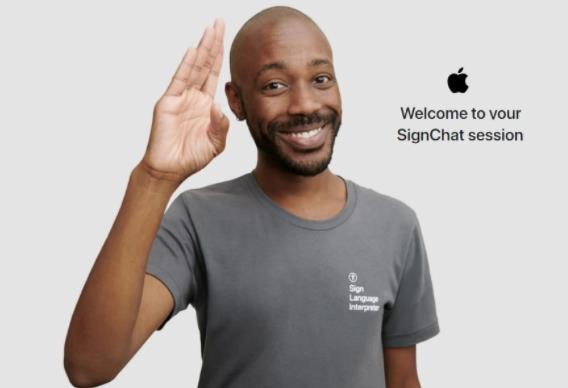 蘋果德國(guó)官網(wǎng)內(nèi)容如下:“歡迎使用 SignChat 會(huì)話。通過使用手語翻譯服務(wù),可以獲得選購(gòu)?fù)扑]和售后支持”。